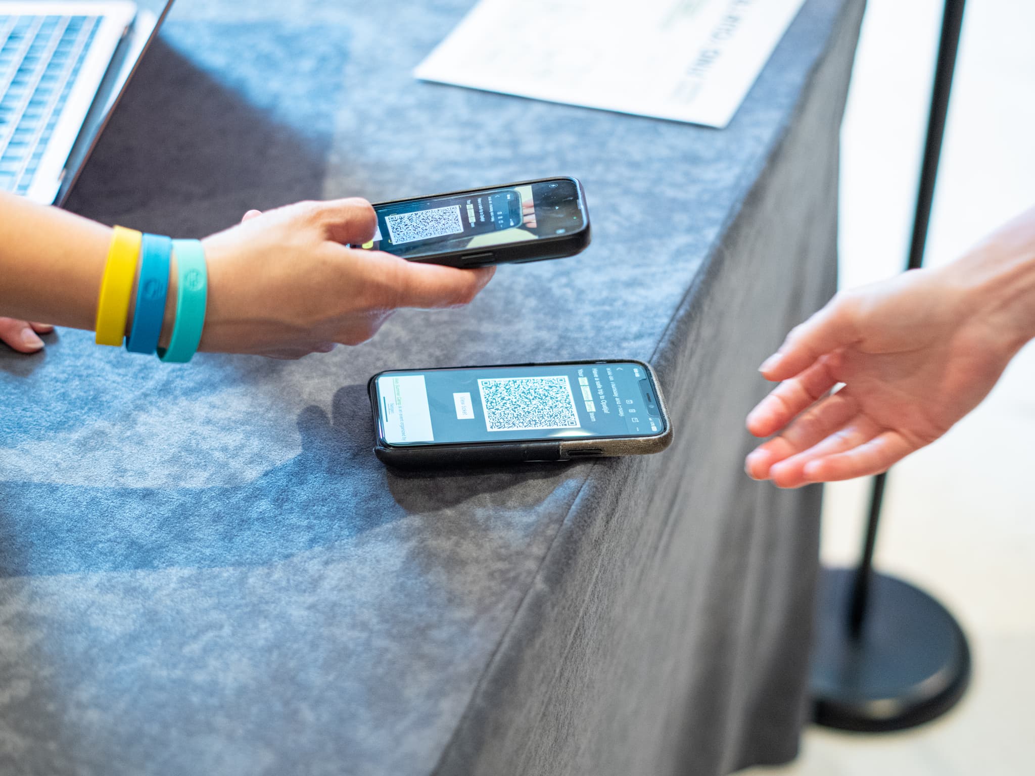 On-site badge printing: Scanning a QR code that instantly prints an attendee badge.